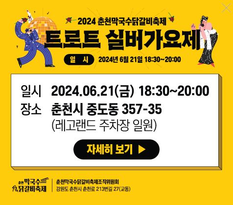2024 춘천 닭갈비 막국수 축제는 6월 18일 개막하여 이번주 일요일 23일까지 진행됩니다.