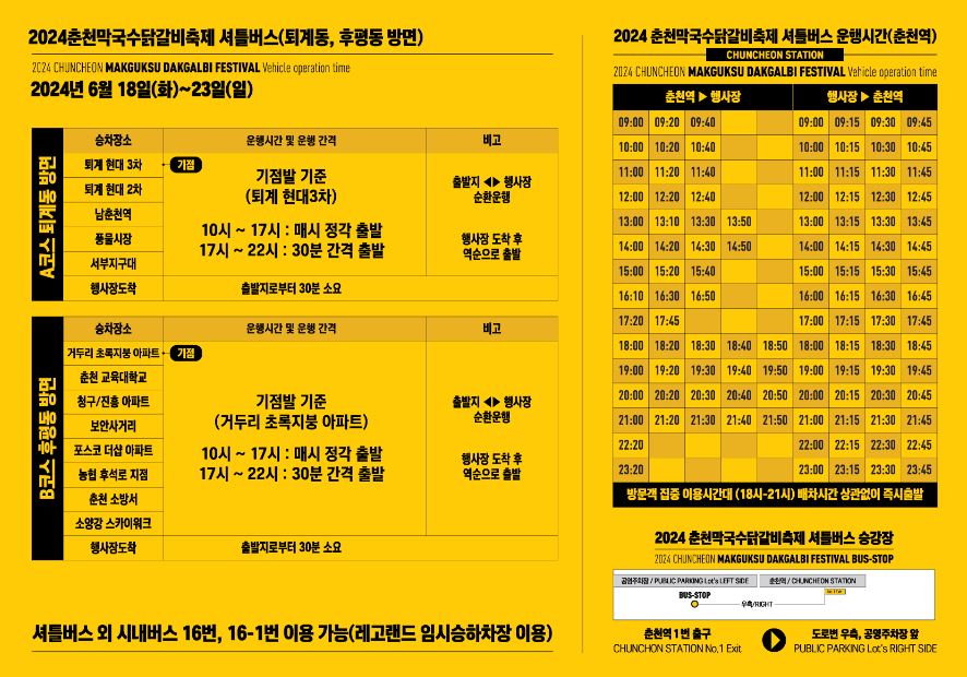 2024 춘천 닭갈비 막국수 축제 셔틀버스 시간표