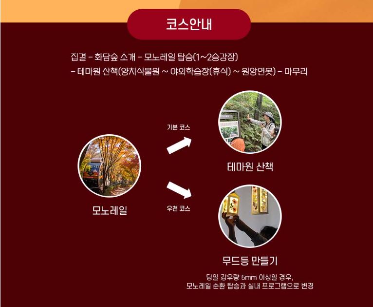 | 예매가능 상품 | 화담숲, 화담채 입장권 모노레일 탑승권(1승강장 출발) |